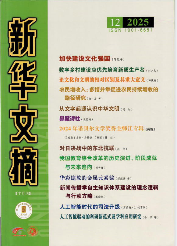 《新华文摘》创刊于1979年,系人民出版社主办的理论性、综合性、学术性、资料性的文摘类权威期刊,其选登和摘编文章代表了该领域的前沿思想,是我国最具学术影响力的二次文献转载刊物。